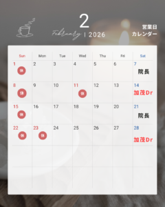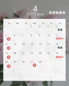 2週、4週の土曜日は院長休みの為、代診の加茂先生になります。